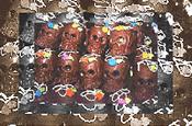 Procedimiento Se derrite el chocolate a baño María, moviéndose suavemente con una pala de madera. Se vacía el chocolate en el molde y se deja secar. Manera de hacer la decoración Puede hacer la duyas o cucuruchos con plástico perfectamente limpio. Bate ligeramente las claras de huevo, agrega azúcar glass hasta que se forme una pasta suave y también unas gotas de limón. Esta mezcla divídela en varias partes iguales, según el número de colores que utilizarás. Llena cada duya (bolsa de plástico) con un color, córtale la punta cuidando que quede una salida muy pequeña y decora las calaveras a tu gusto. Puedes utilizar la duya para ponerle nombre a cada calavera. |