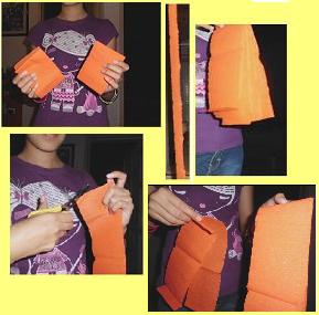 3.- Toma una parte y extiéndela. Te quedara un tira larga que vas a doblar a la mitad y cortar, vuelves a doblar a la mitad y cortar, otra vez doblas a la mitad y cortas, nuevamente de tal manera que te queden 8 tiras iguales.
