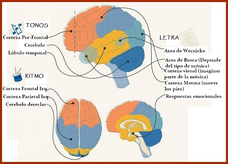 El tono, el ritmo y la letra tienen efectos en ciertas partes del cerebro.