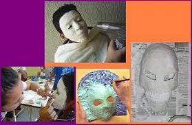 - Antes de comenzar a realizar tu máscara, tienes que cubrirte la ropa con un delantal o ponerte encima ropa vieja que ya no uses. - Peina el cabello hacia atrás descubriendo tu cara, y para sostenerlo en esa posición ponte la cinta o banda para el cabello. - Una vez que tienes la cara libre, con ayuda de un adulto cubre muy bien tu cara con vaselina, esto ayuda a que después puedas desprender fácilmente la máscara sin lastimarte. - Corta la venda en tiras siguiendo el ancho del rollo. Es recomendable cortar tiras largas para cubrir amplias zonas de la cara y tiras pequeñas para añadir detalles. Corta tantas tiras como necesites. - De una por una, toma una tira y humedécela en el agua tibia, remueve el exceso agitándola suavemente y aplícala directamente sobre tu cara, recuerda que el agua debe estar a esta temperatura por que si esta demasiado caliente además de que podrías quemarte, el yeso se endurece muy rápido y no se podría trabajar. En cambio si esta muy fría te molestaría y tomaría más tiempo en secarse. - Coloca la primera tira del yeso sobre la frente. Enseguida coloca otras tiras alrededor de la nariz , los ojos, debajo de los ojos, las mejillas hasta la barbilla. - Después de unos 10 minutos, las vendas húmedas se empezaran a secar y la máscara empezara a ponerse dura, si es necesario añade material hasta que tenga suficiente grosor como para removerla, sobre todo en las orillas. Una vez que este hay que quitarla suavemente para evitar que se fracture. - Retira toda la vaselina de tu cara con pañuelos de papel y luego lávala con agua tibia y jabón. - Espera el tiempo suficiente para que tu máscara se seque, luego píntala con pintura acrílica. - Perfórale a tu máscara un par de agujeros a los lados para que por allí le pasas un cordel o resorte y así puedas sujetarla a tu cara.