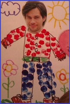 - El elemento principal de estas manulidades será las imágenes; podemo dibujar un paisaje donde también dibujaremos el cuerpo de papá y en lugar de la cara pegar una foto suya.